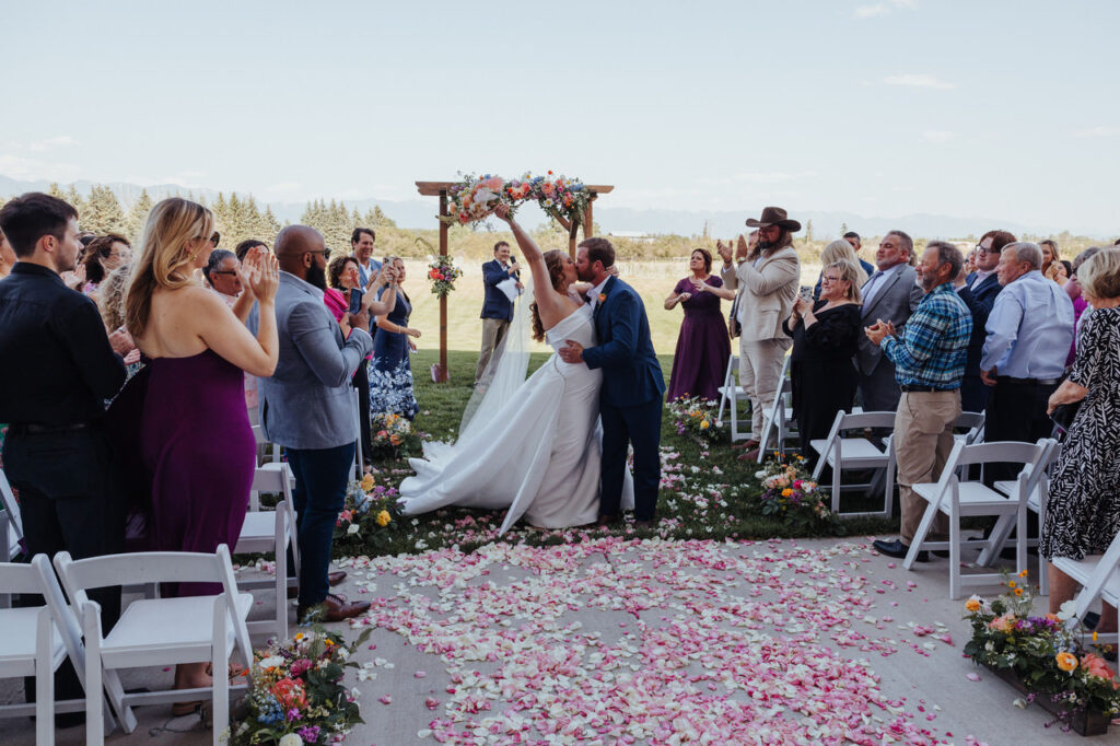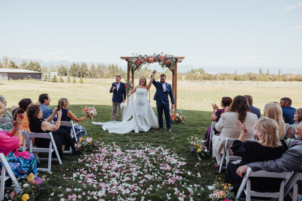 What more could you want from your wedding day?! These elements best sum up Leah and Ben’s wildflower wedding in just a few words. Their big day positively burst with colorful blooms set against a background of Glacier mountains, a golden sun, and an endless Montana sky. Our team here at Big Day Celebrations helped them achieve their perfect 4-day wedding weekend filled with intentional moments of connection, highly personalized details, and beauty!