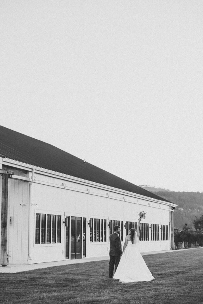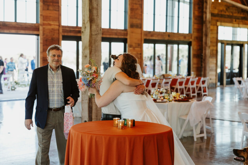 They couldn’t help but throw their arms up in the air as an acoustic version of “What a Wonderful World” rang out. When they walked inside the reception building right after the ceremony, Katie congratulated them with a huge smile and hug! One of our favorite parts of our job is this moment right here. We’re often the first people you see after you get married. We wait at the top of the aisle with a smile, hug, and drink before giving you a private newlywed moment. It’s never lost on us what a privilege our role is, which makes this moment one of the most emotional of the day for us!