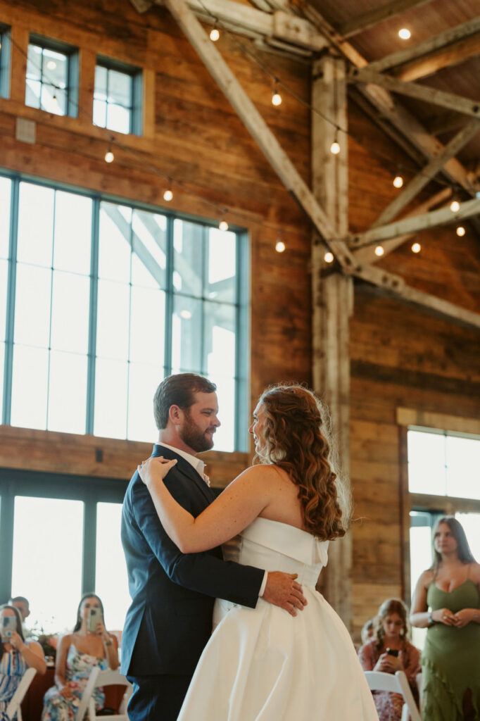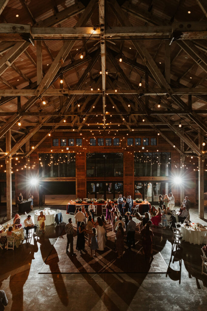 The celebration that evening began with Leah and Ben’s first dance to “Once in a Lifetime Love” by Alan Jackson and ended with a private last dance to “You” by Miley Cyrus. In between, there were heartfelt toasts, incredible food (we’re talking angus ribeye, chicken with lemon and capers, an heirloom Italian vegetable blend and more!), snaps at the photo booth, and a whole ton of fun on the dance floor! As the sun went down, the overhead twinkle lighting set the vibe for the dance party. We may have even busted out a few of our own dance moves too!